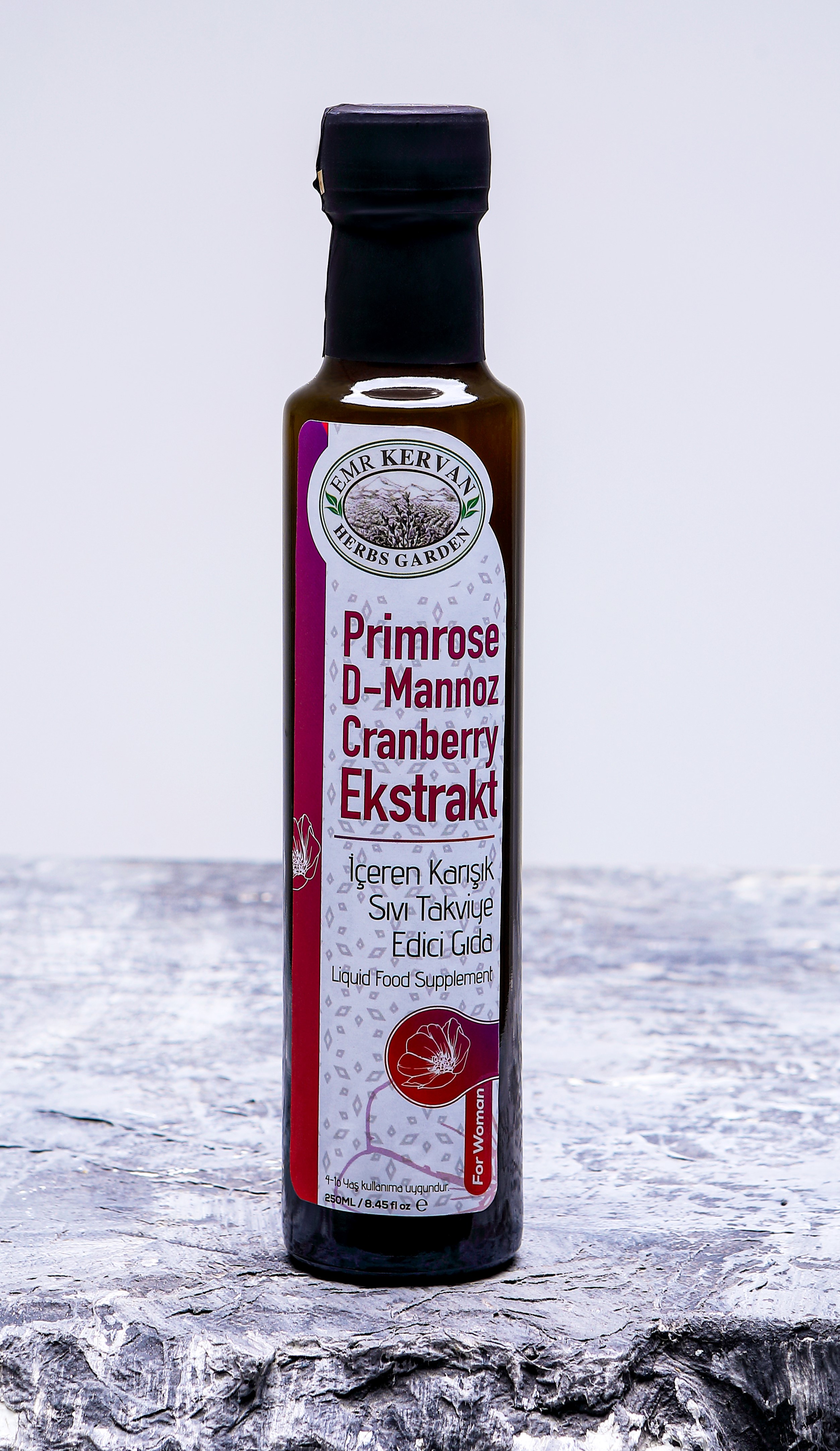EVENING PRIMROSE & D MANNOZ ve CRANBERRY EKSTRAKTI İÇEREN SIVI TAKVİYE EDİCİ GIDA 250ML